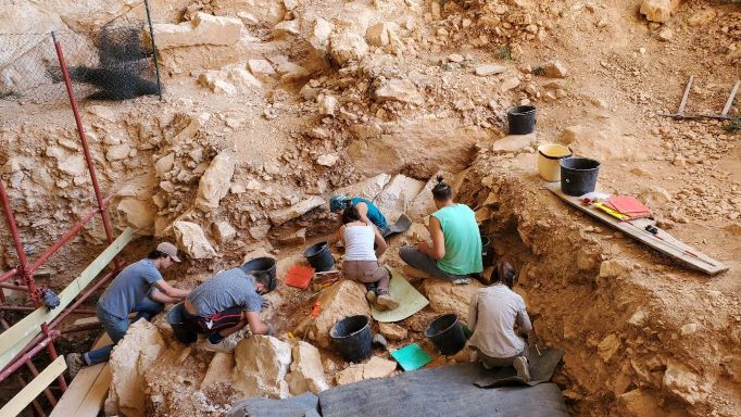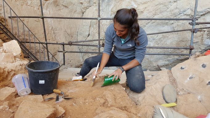 Excavation requires patient scraping with special tools and brushes so as not to damage delicate animal bones and stone tools.