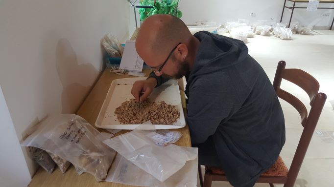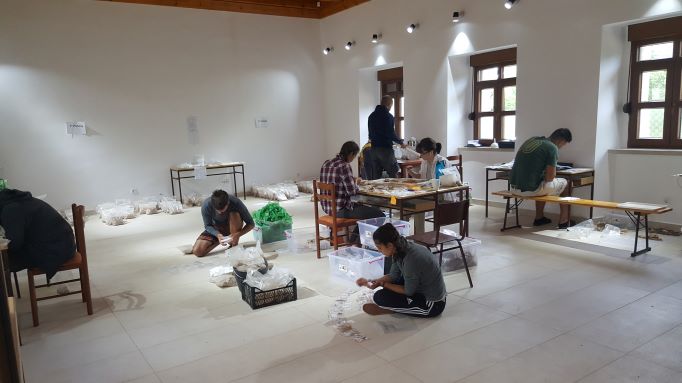 In the lab, the washed sediment is carefully examined, and all artifacts and bones are removed and saved.