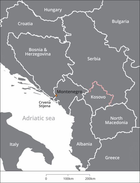 From the village of Petrovići, follow the signs to Manastir Kosijerevo. When you drive past the monastery, you will see signs indicating Crvena Stijena. Follow the signs until you reach a gravel parking area. Park your car and walk down the gravel road to the site on foot. Do not attempt to drive down this gravel road unless you have a 4x4 vehicle!