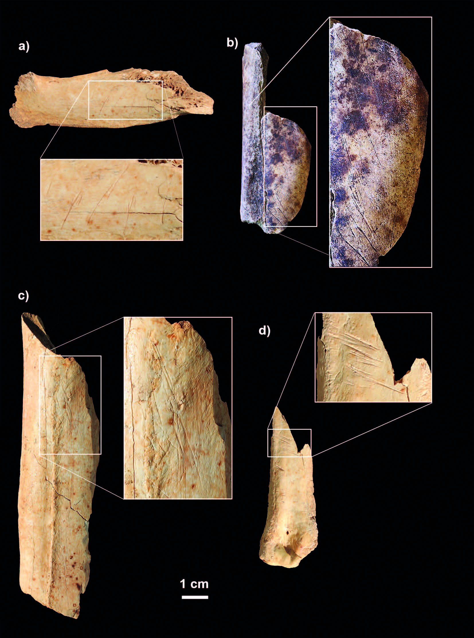 A large percentage of the animal bones found at the site bear butchery marks made by stone tools.1