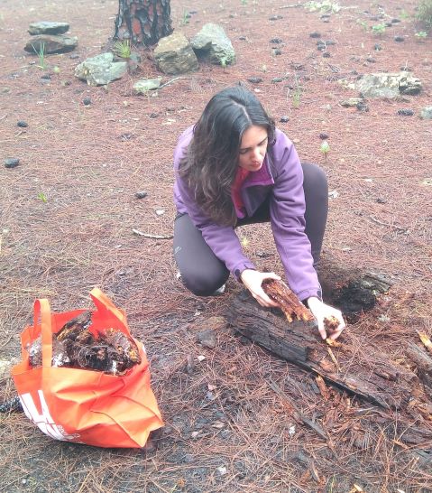 Anthracologist Paloma Vidal studies charcoal; she carries out burning experiments in order to document the different burning properties of different kinds of wood.