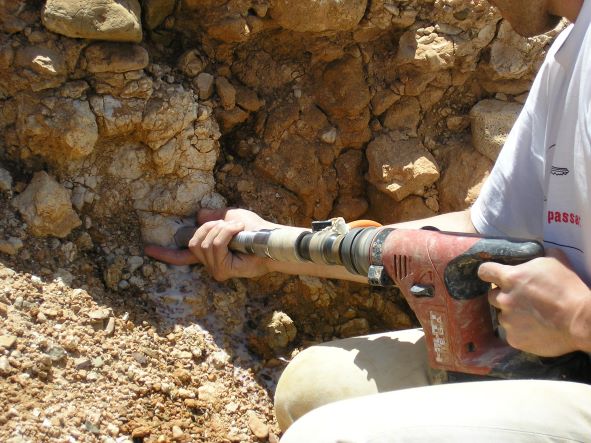 Geophysicist Angel Carrancho removes cores of sediment from an archaeological profile in order to study the magnetic properties of the sediment, which give us important information about their exposure to fire.
